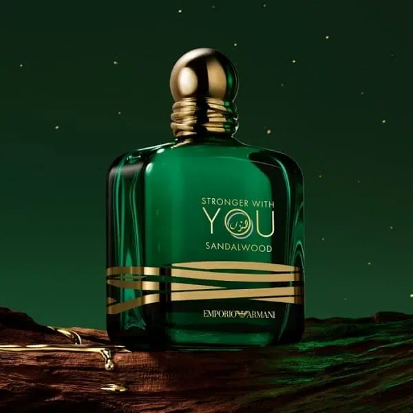 2025 წელს, იტალიური მოდის სახლი Giorgio Armani-ს გულშემატკივრებს ახალ მისტიკურ აღმოსავლურ-ხისებრ სურნელოვან კომპოზიციას Stronger With You Sandalwood წარუდგენს. არომატი მოთავსებულია დახვეწილ, ცდუნებებითა და საიდუმლოებებით მოცულ მწვანე ბოთლში, ჭურჭელი და თავსახური ორი ოქროს რგოლითაა შემოსაზღვრული.