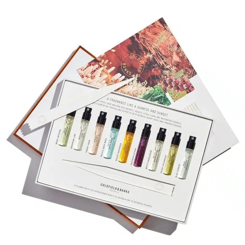 აღმოაჩინეთ Goldfield & Banks Australia Discovery Set სუნამოების მრავალფეროვნება ჩვენი მდიდრული ნიმუშების კოლექციით. მოიხიბლეთ თქვენი გრძნობები და გაანებივრეთ საკუთარი თავი ან მეგობრები 9 სხადასხვა 2 მლ–იანი სუნამოს სინჯებით.