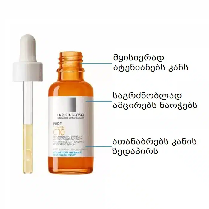 სიელი წარმოგიდგენთ: ლა როშე შრატი ვიტამინი C 10 Serum La Roche-Posay. დერმატოლოგებთან პარტნიორობით, ბრენდი La Roche-Posay ავითარებს კანის მოვლის ინოვაციურ ფორმულებს. ეს არის კანის განსაახლებელი ანტიოქსიდანტური ბოლო თაობის შრატი.